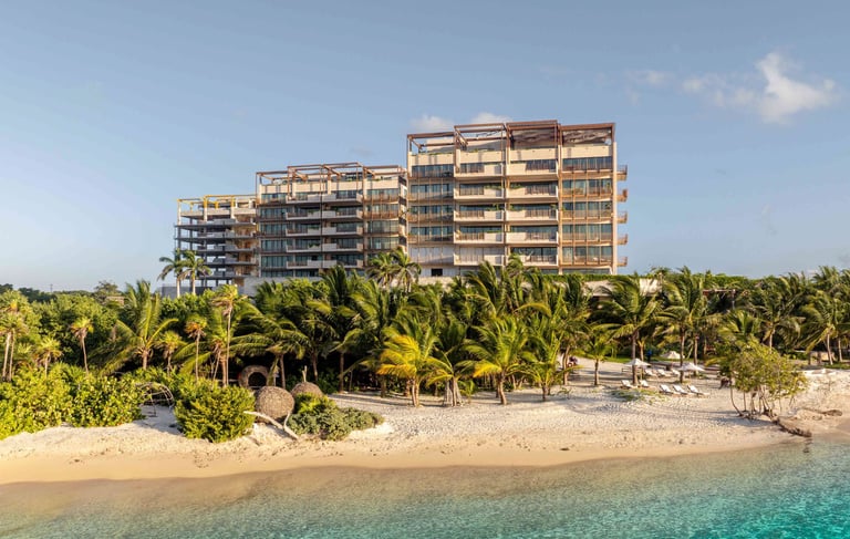 Diseñado por Cuaik Arquitectos, este desarrollo se integra armónicamente al Beach Club más grande de México, con más de 42,000 m² de experiencias frente al Caribe y 132 metros lineales de playa privada.