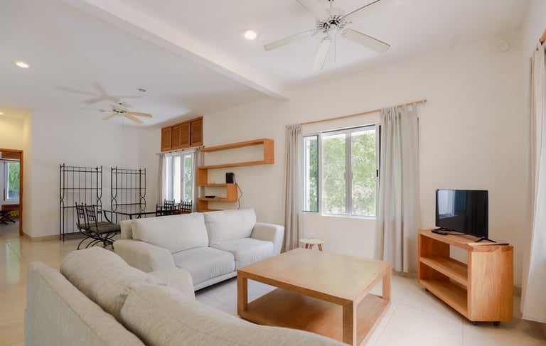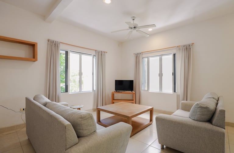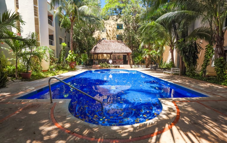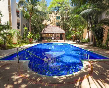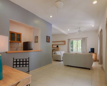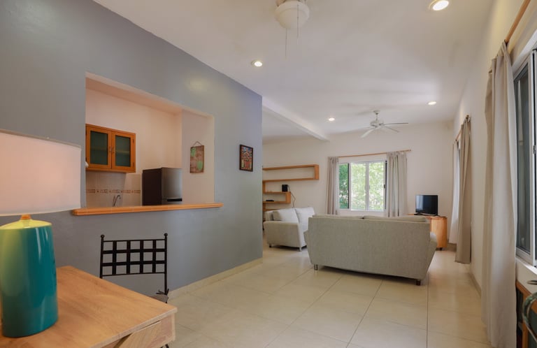 Ubicado dentro del residencial cerrado Kin Bé, este departamento ofrece una combinación ideal entre funcionalidad, tranquilidad y ubicación privilegiada en Playacar Fase II, una de las zonas residenciales más seguras y valoradas de Playa del Carmen.